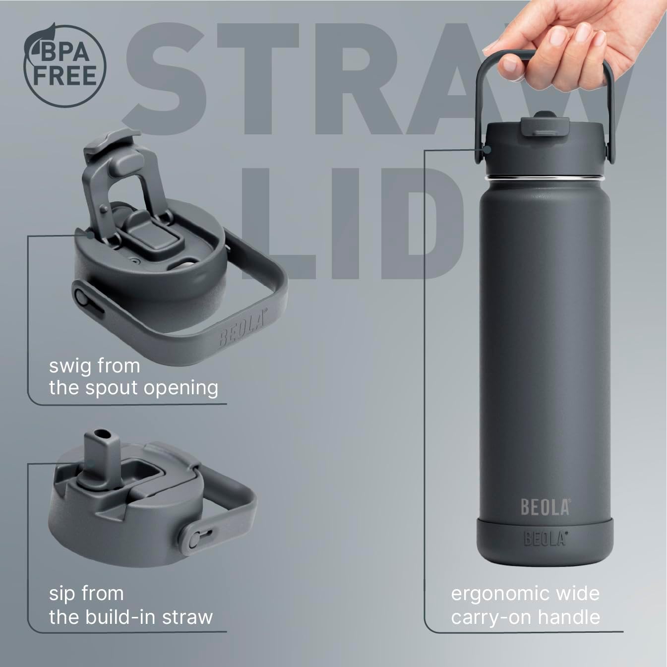 750ml Stainless Steel Insulated Water Bottle – Double Wall Thermos with Straw & Wide Mouth Lids (Hot & Cold)