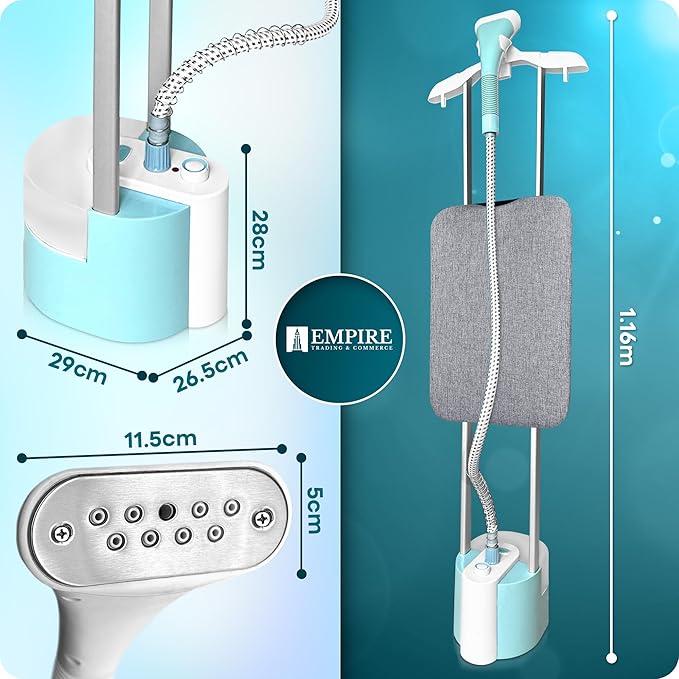 Get wrinkle-free clothes in minutes with this 2000W full-size garment steamer. Features 2 steam modes, 32g/min steam output, a 1.8L water tank, hanger rack & vertical ironing board – perfect for home or professional use.